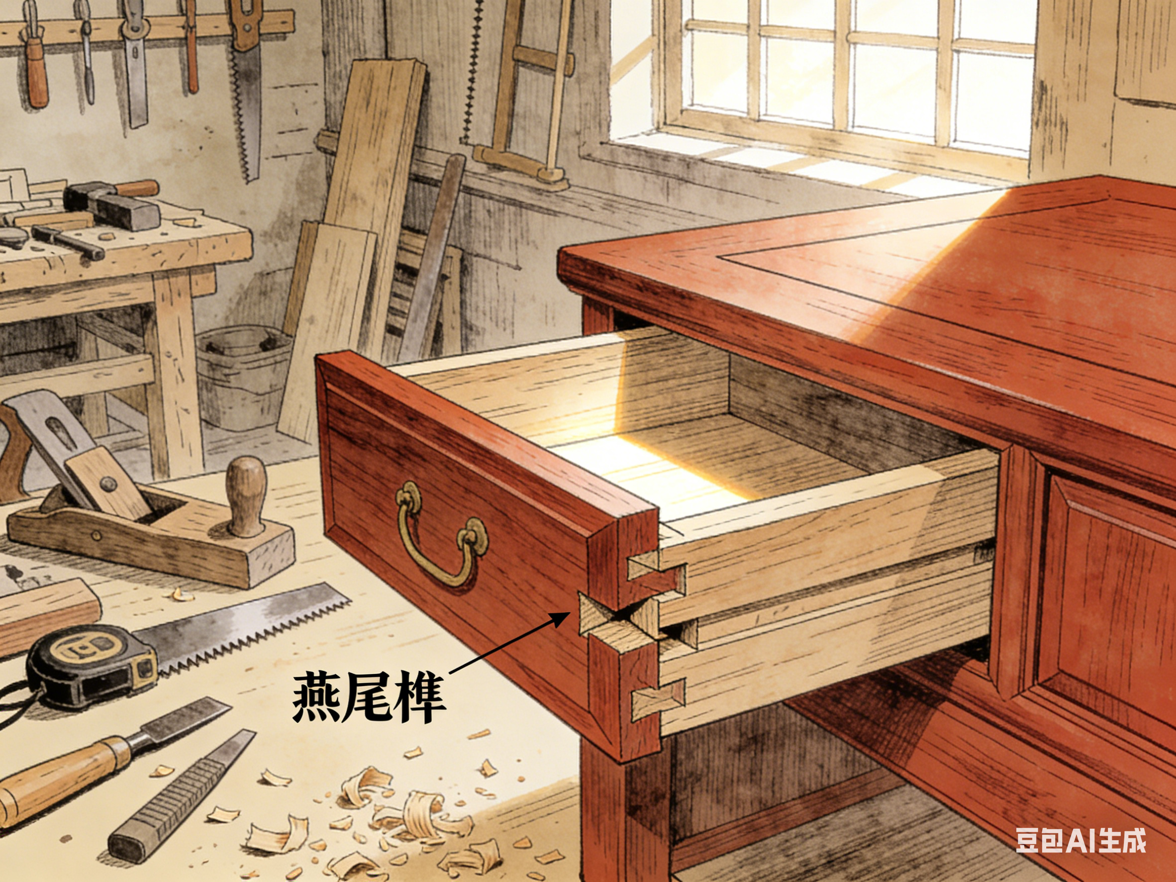 从构件组合数量看,可分为单榫、双榫与多榫。榫头数量越多,胶接面积越大,连接强度越高。单榫、双榫多用于桌椅等简单家具,多榫则适用于箱柜、抽屉等需要高强度连接的构件。此外,还有托角榫、粽角榫等多构件组合的复杂结构,用于实现三个及以上构件的同步衔接。