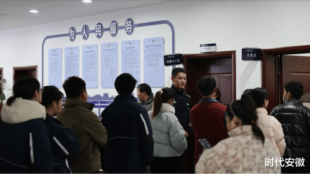 面对持续攀升的服务量,阜南公安户籍民警辅警前置服务、高效履职,积极做好群众引导、咨询解答、信息采集、材料核验等各项工作,以严谨细致的作风、熟练专业的水准有序应对服务高峰。