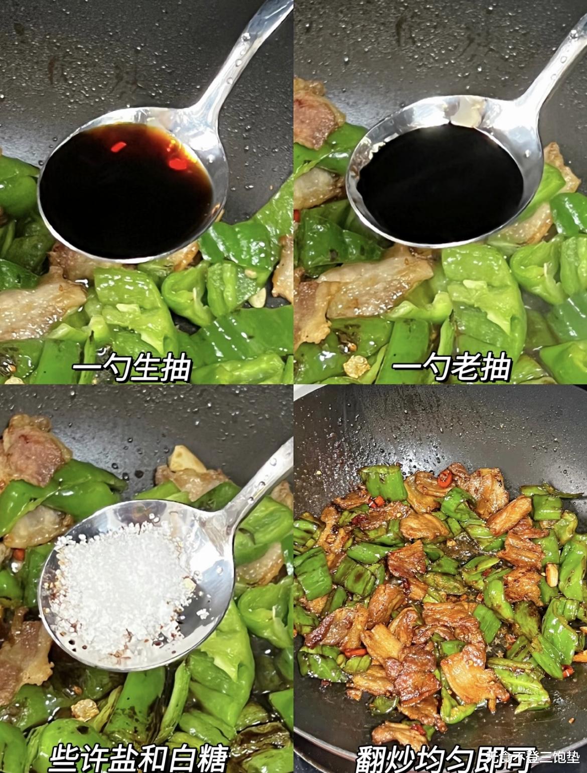 紧接着,倒入切好的辣椒块,转大火快速翻炒。辣椒在热油的激发下,会迅速散发出独特的清香,与五花肉的焦香完美融合。翻炒约1-2分钟,待辣椒断生,边缘微微起虎皮时,就可以调味了。倒入调好的酱汁——2勺生抽、半勺老抽、1勺蚝油和少许白糖,快速翻炒均匀,让每一片肉和每一块辣椒都裹上浓郁的酱色。