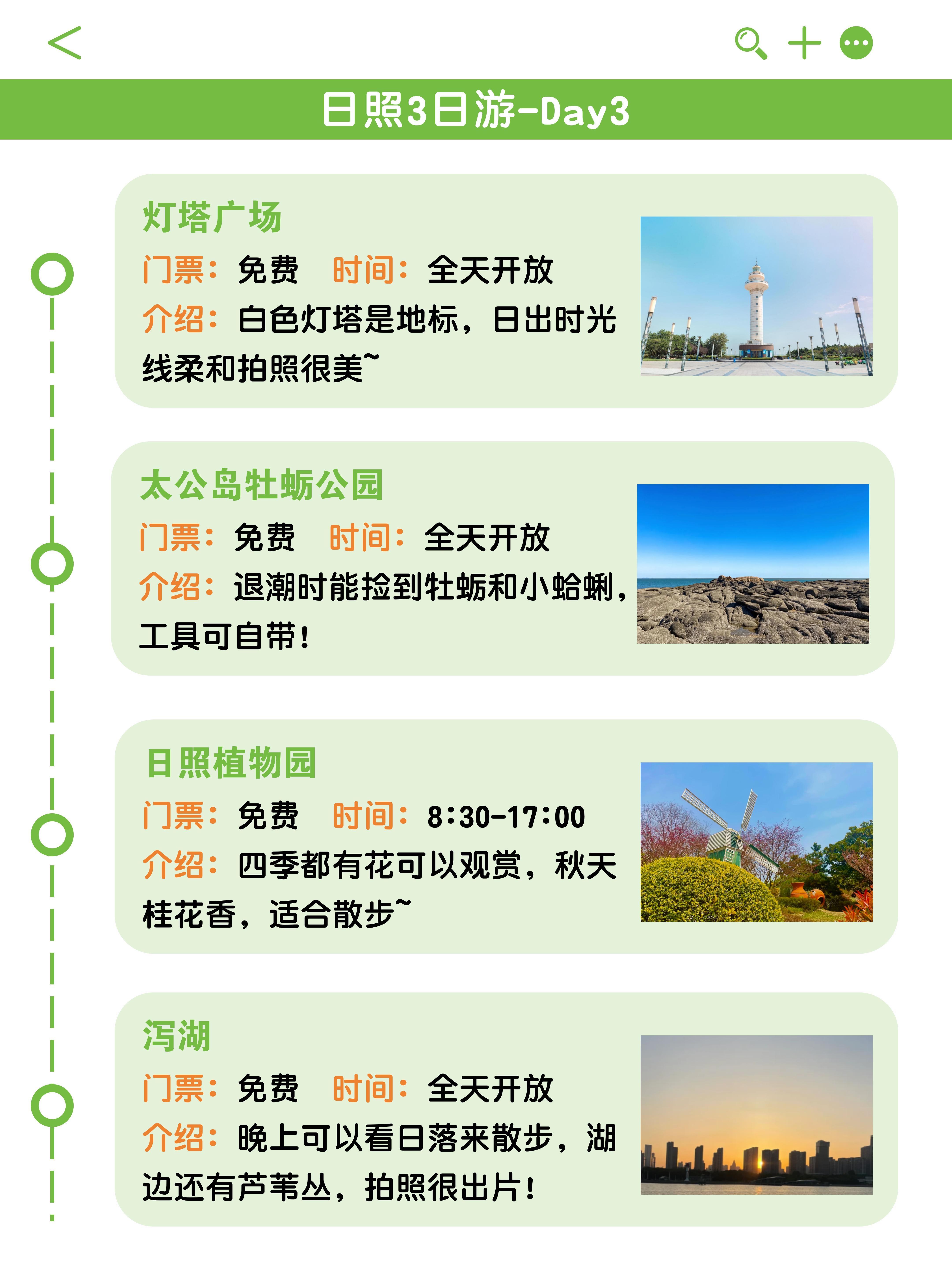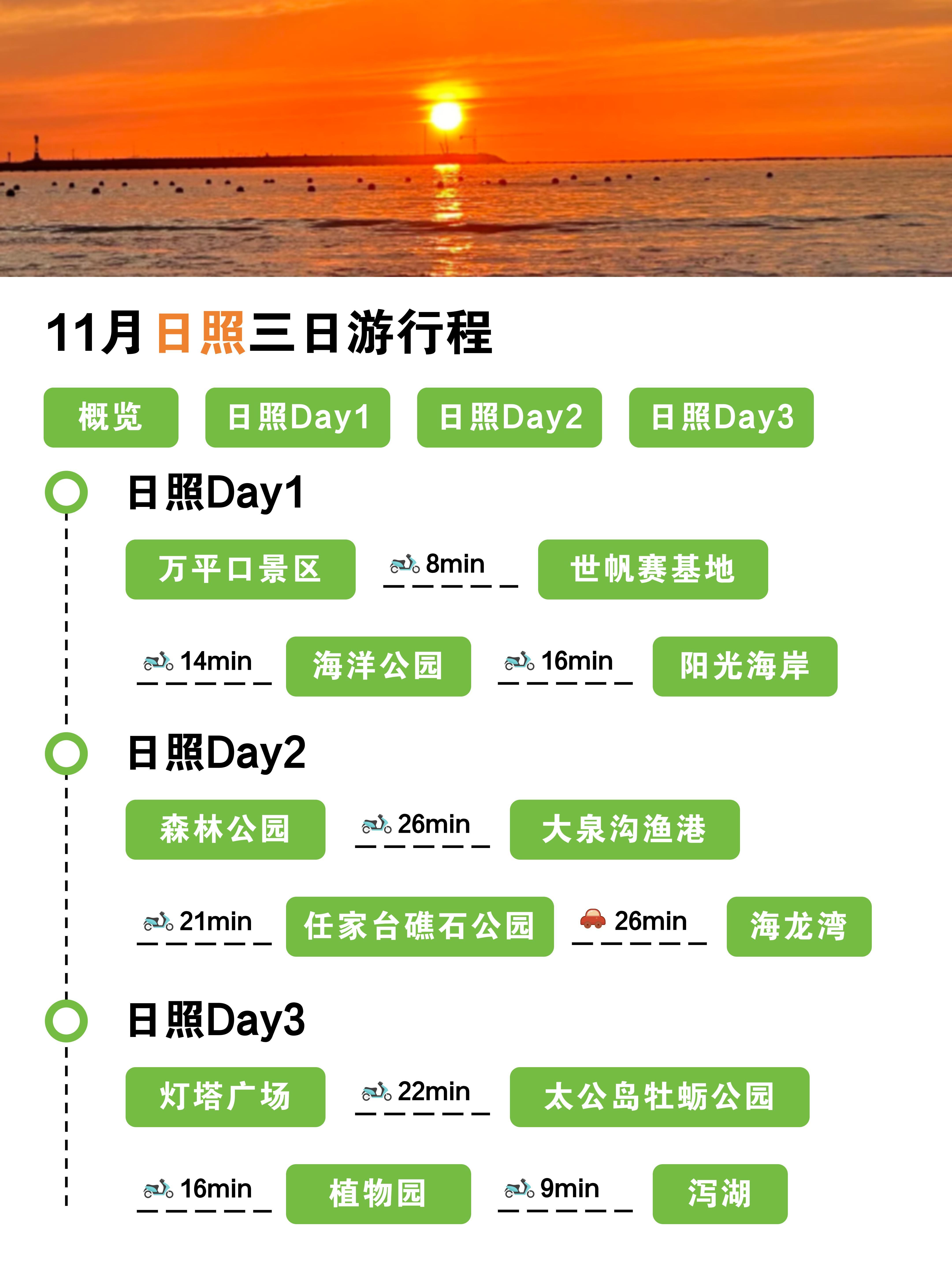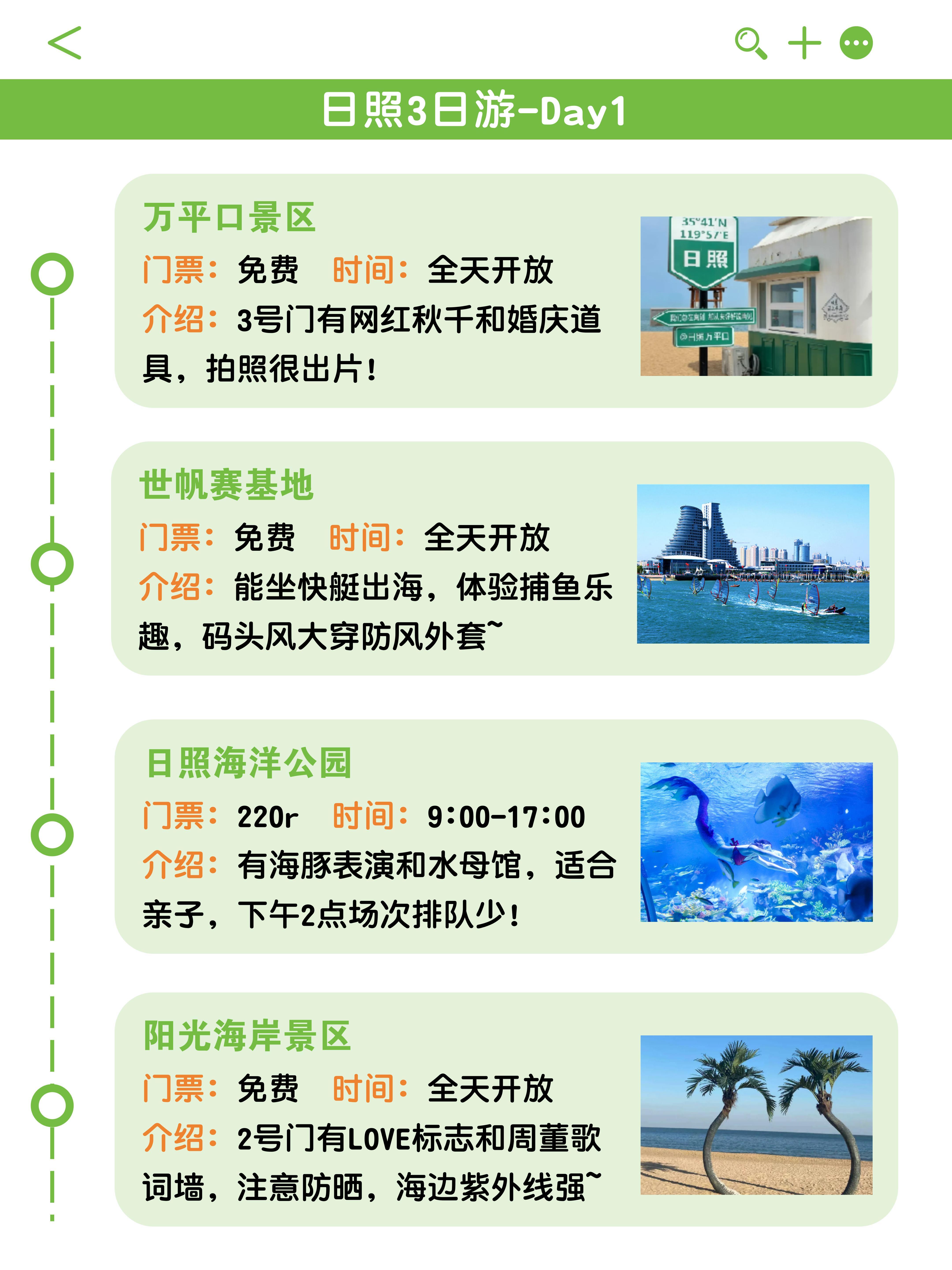 打算淡季和朋友去日照玩几天,我提前做了一份攻略🥰,包含了三天的时间路线、美食指南、交通等等,需要的姐妹可以作为参考📄!