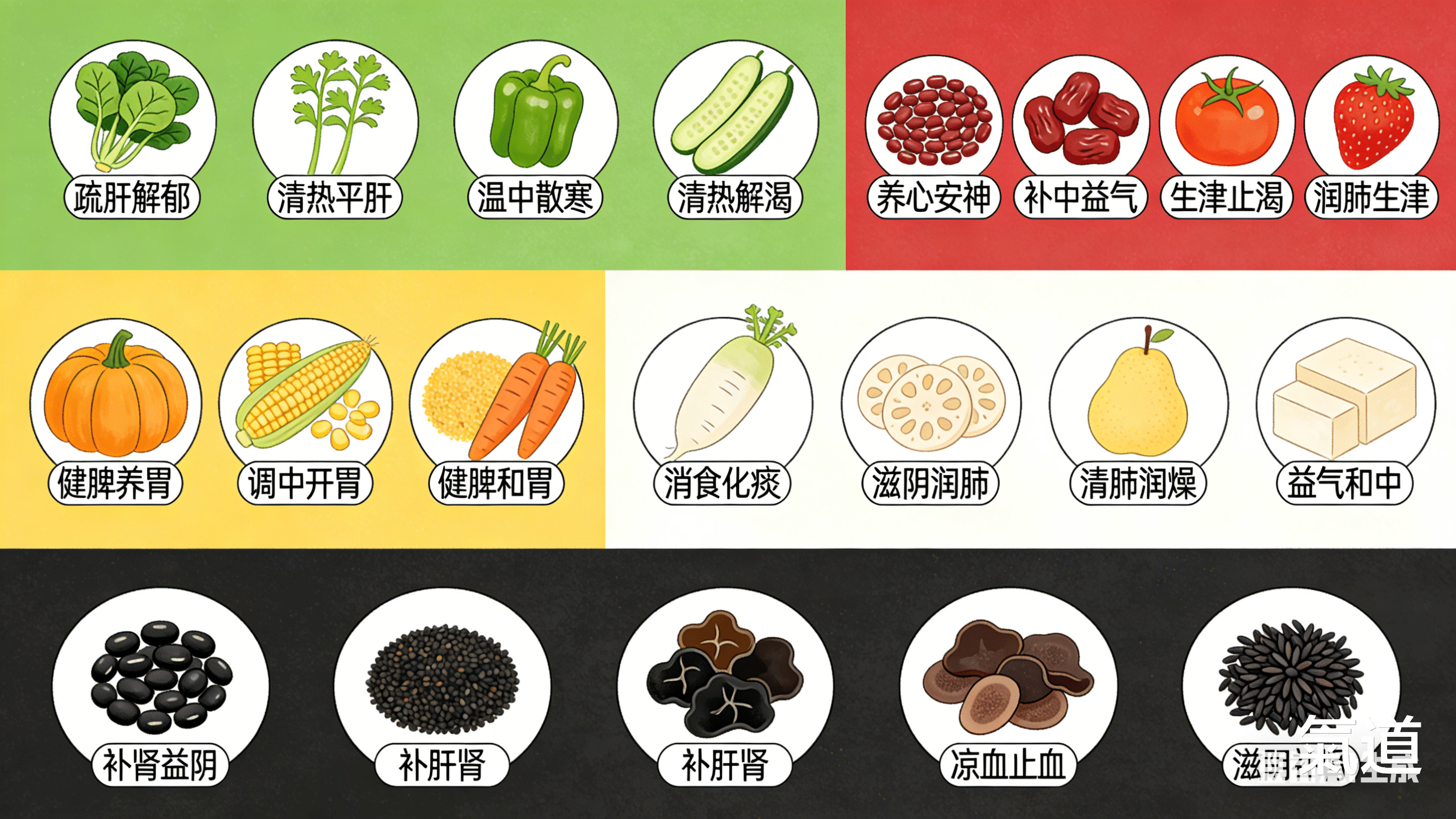 - 木(肝):多吃青色食物如菠菜、芹菜、绿豆,中医认为绿豆“益肝排毒”,这类食材可作为日常调理,辅助起到清热解毒、疏肝解郁的作用(非治疗功效)。
