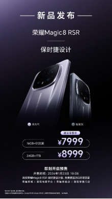 1月19日,荣耀终端有限公司与保时捷设计(Porsche Design)正式联合发布超跑级先锋设计旗舰荣耀Magic8 RSR 保时捷设计。新品深度融合保时捷设计标志性的超跑美学基因,为全球高端用户打造一款兼具先锋创新力与极致奢华配置的智能终端。