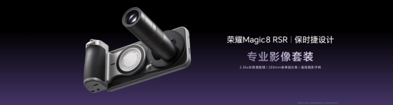 为满足专业创作需求,荣耀Magic8 RSR 保时捷设计还可以选配专业影像套装,内含2.35x等效焦距200mm长焦增距镜、67mm滤镜转接环及专业磁吸手柄。配件支持半按对焦、全按拍摄的专业操作逻辑,大幅提升拍摄仪式感与创作效率,拓展移动摄影创作边界。