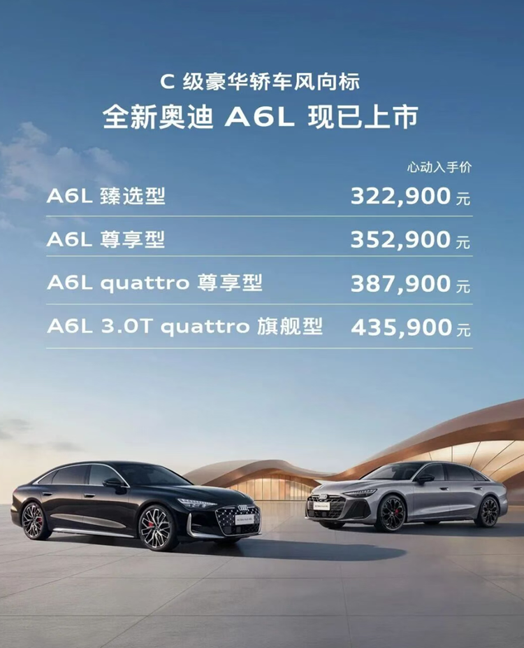 全新奥迪A6L的上市,无疑为一汽奥迪注入了强劲动能。4个版本的定价落在32.29-43.59万元区间,叠加定金抵尾款、置换增购补贴、5年贷款前两年0息等实打实的购车权益,充分展现了品牌对中国市场的诚意与信心。