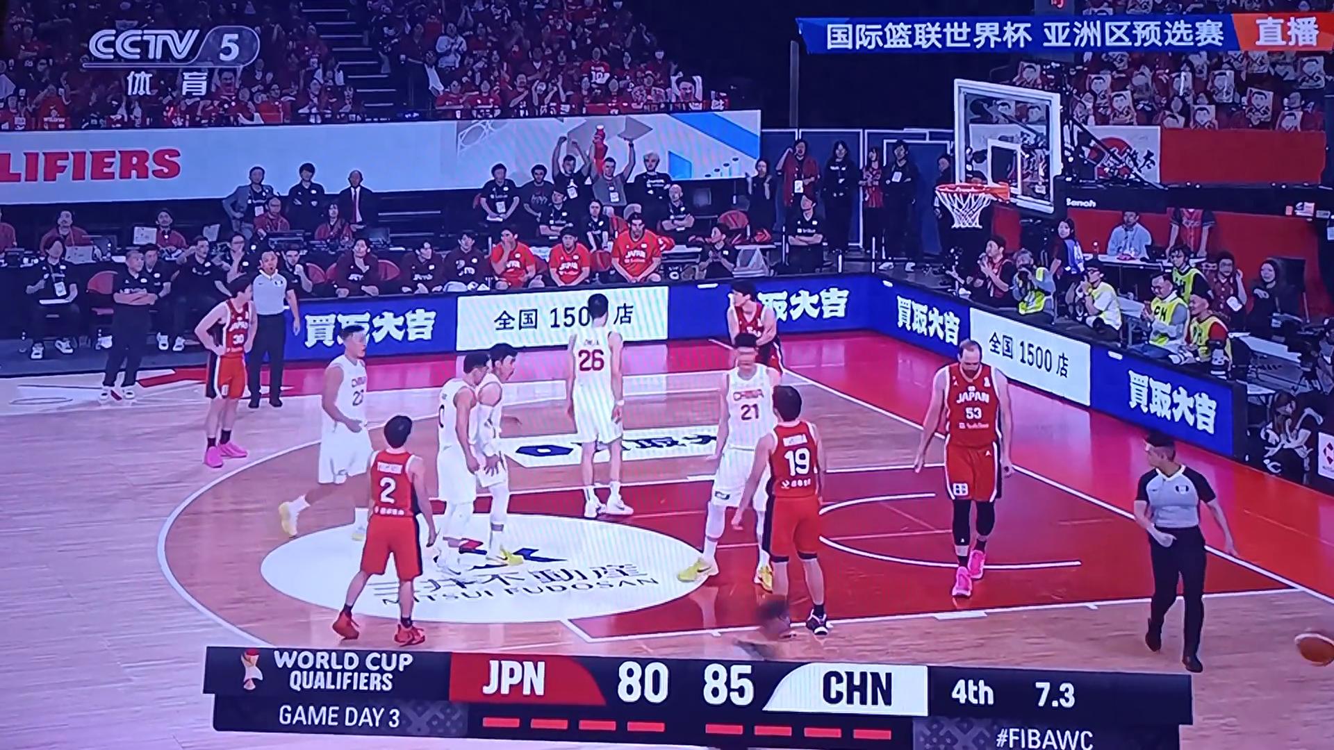 我两发没有中,但是胡金秋有篮板,突进来暴扣,漂亮,好球。这样全场比赛结束,中国队在极其不利,在现场环境受到非常大影响的情况下,最终拿下了这场比赛。在置之死地而后生的情况下,完成了一场关键的比赛,拿到了一场关键的胜利。