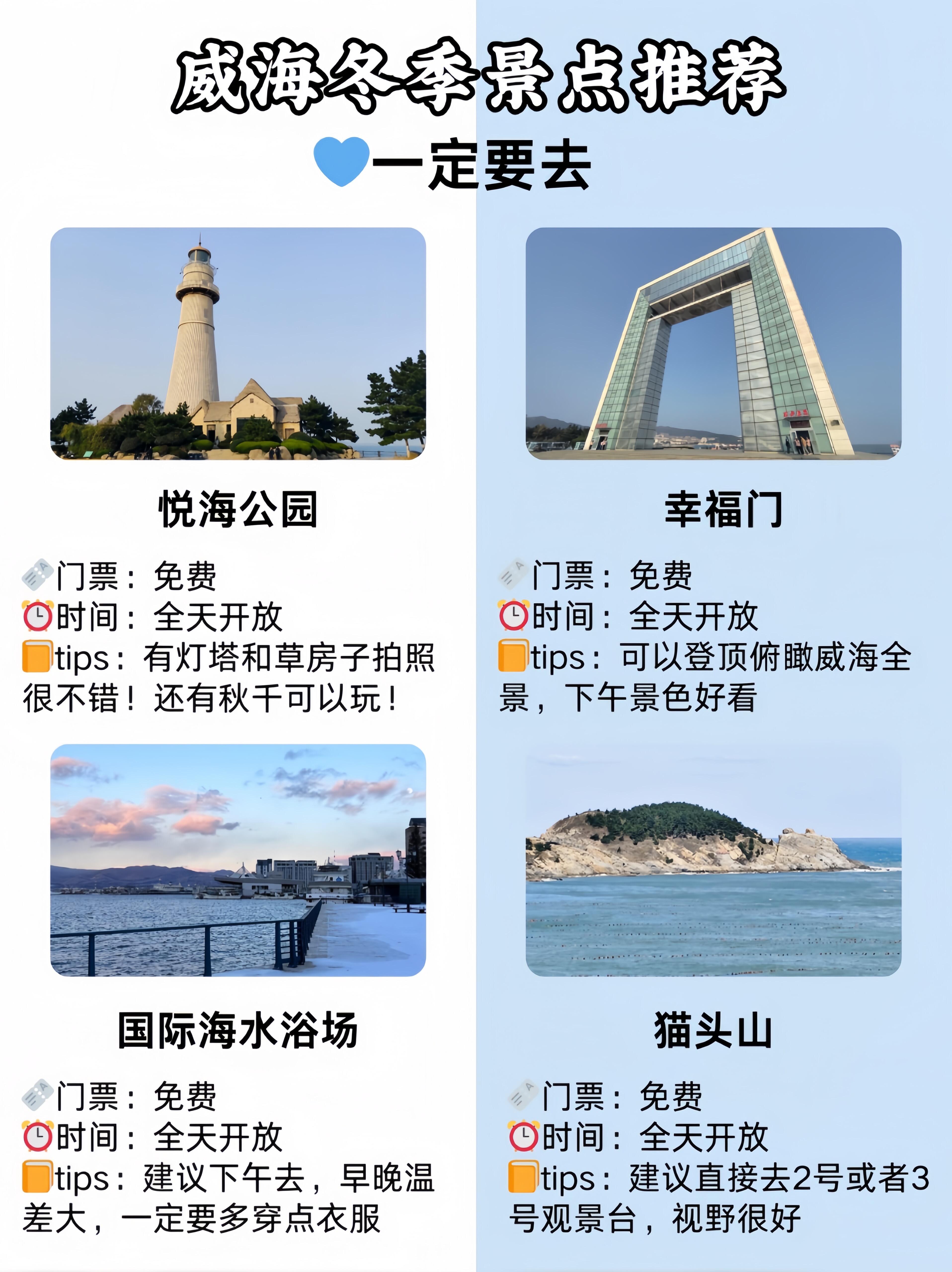 冬季计划来威海旅游的宝子们💝一定要做好攻略再出发‼ 毕竟,漫无目的真的很容易玩不尽兴~给大家整理了一份简单清晰的懒人攻略,希望能对即将来威海旅游的你们有所帮助😁