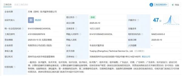 苹果应用商店信息显示,“死了么”APP的提供者为月境(郑州)技术服务有限公司,天眼查显示,该公司于2025年3月10日成立,注册资本10万元。