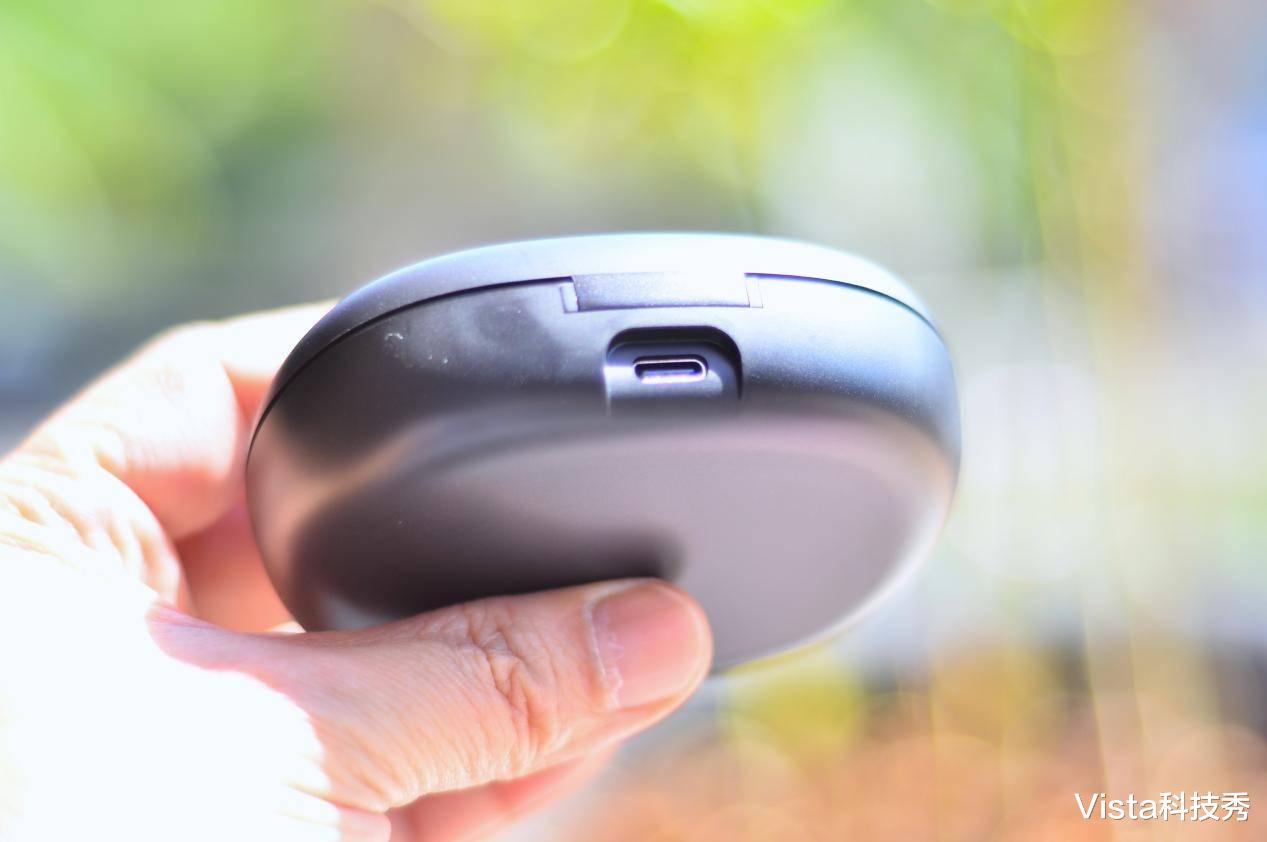 雷登T9充电仓为椭圆形鹅卵石型设计,正面印有雷登OHAYO品牌LOGO,抓握手感舒适还不易沾染指纹,充电仓后方设计有TYPE-C充电口。
