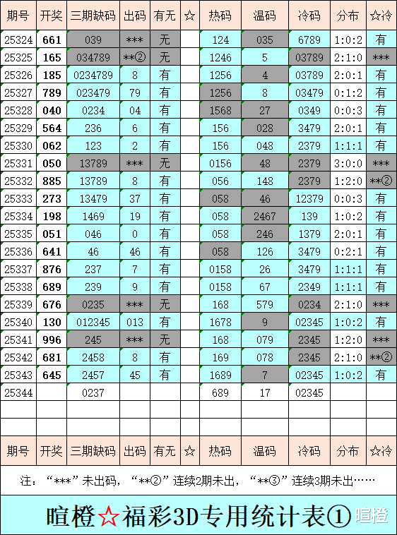 25344期:暄橙福彩3D综合条件(本期超时,仅统计)