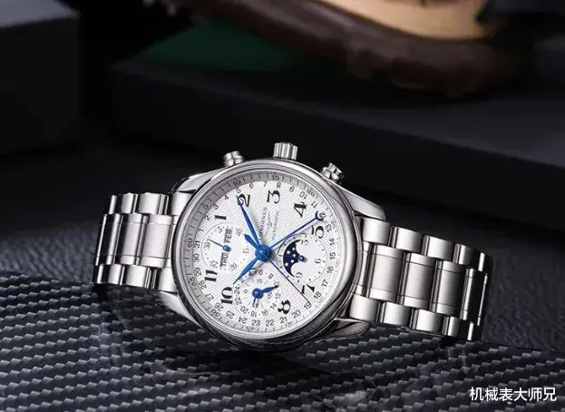 若论“鸡头”,浪琴名匠八针月相堪称3万价位功能王者。麦穗纹银盘、蓝钢指针、多个小表盘布局,集月相、计时、双时区、日期星期月份于一身,设计繁而不乱。钢带款飒爽,皮带款儒雅,满足四季搭配需求。尽管功能复杂一定程度上增加了读时与保养的考量,但其工艺与颜值在同价位难逢敌手。适合那些不愿局限于简约、希望腕表兼具技术美感与实用功能的佩戴者。