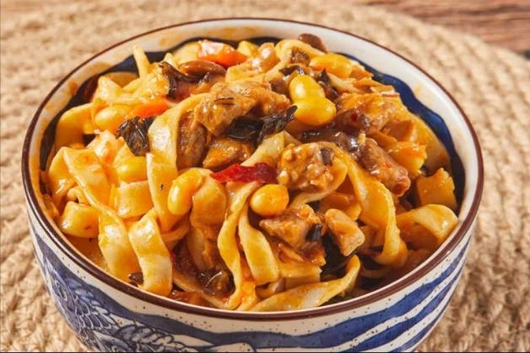 臊子:猪里脊丁,胡萝卜,香菇,黄花菜,木耳,泡好的黄豆,豆腐干,料酒 ,生抽 , 酱油 , 淀粉 ,盐 ,黄豆酱或者辣椒酱