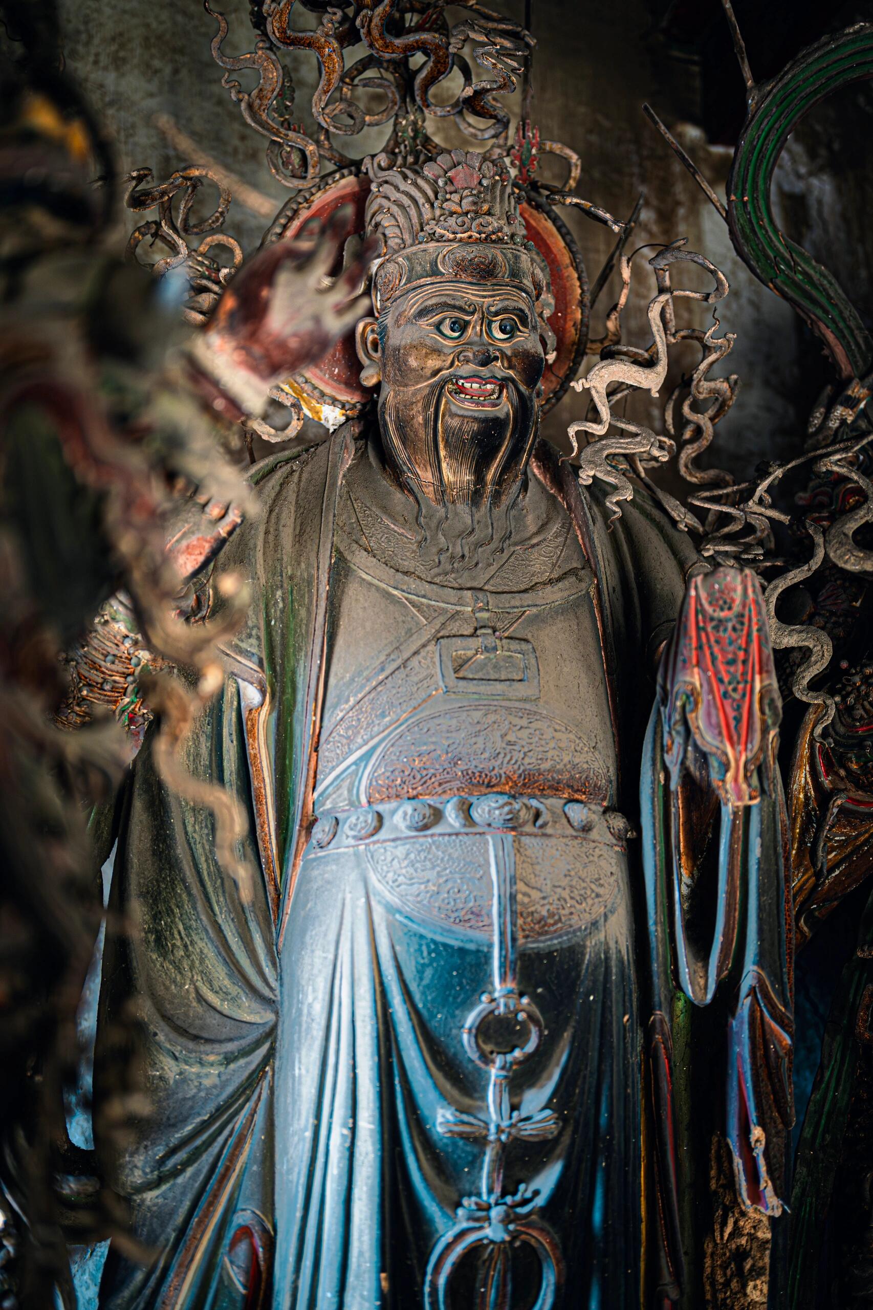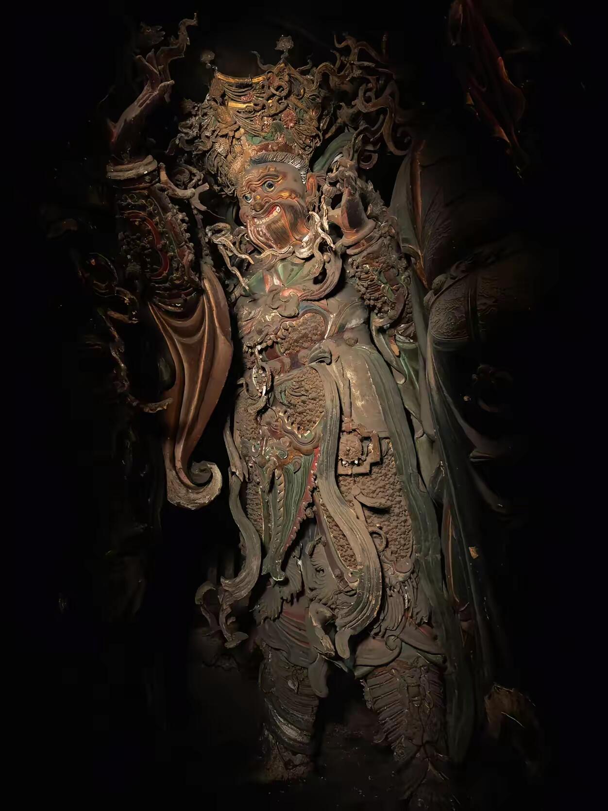 二十四诸天彩塑就立在走道尽头的佛台上,离得老远只能看见个模糊的轮廓。最东头的那位天神披着铠甲,头盔上的红缨早就没了,露出里面的铁丝架,像插着几根锈针。老李说这铁丝是明代的,当年工匠从晋城的铁矿里挑的好料,现在用磁铁去吸,还能听见滋滋的响。有回文物局的人来检测,说铁丝的含碳量比现在的钢筋还高,老李听了直撇嘴,说再结实也架不住麻雀啄,现在铠甲的铁片上尽是小坑,是麻雀的杰作。
