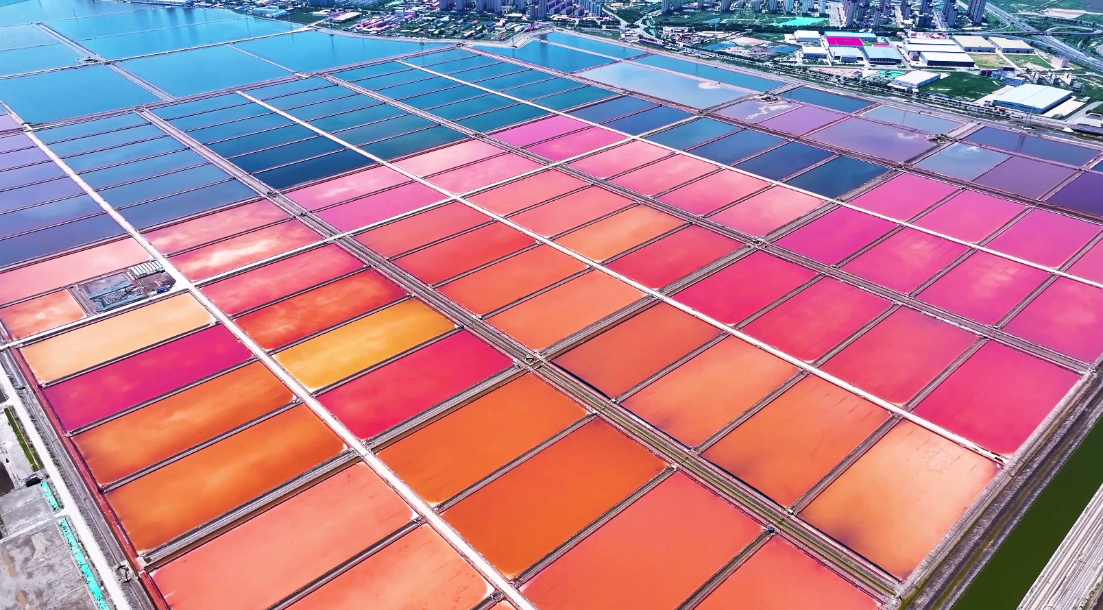 浅蓝与深紫,映照着天空与富含钾、镁等矿物质的清澈卤水;