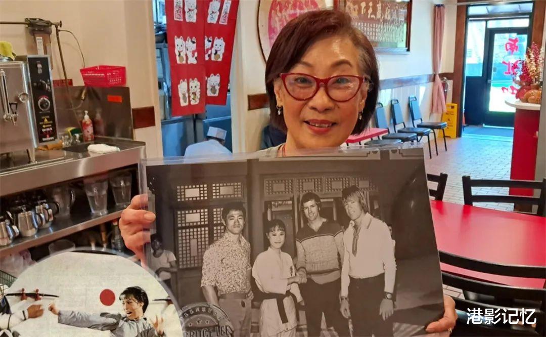 这部戏便是李小龙的巅峰之作《龙争虎斗》,在戏里演他的姐姐,实际上她比小龙哥小10岁。