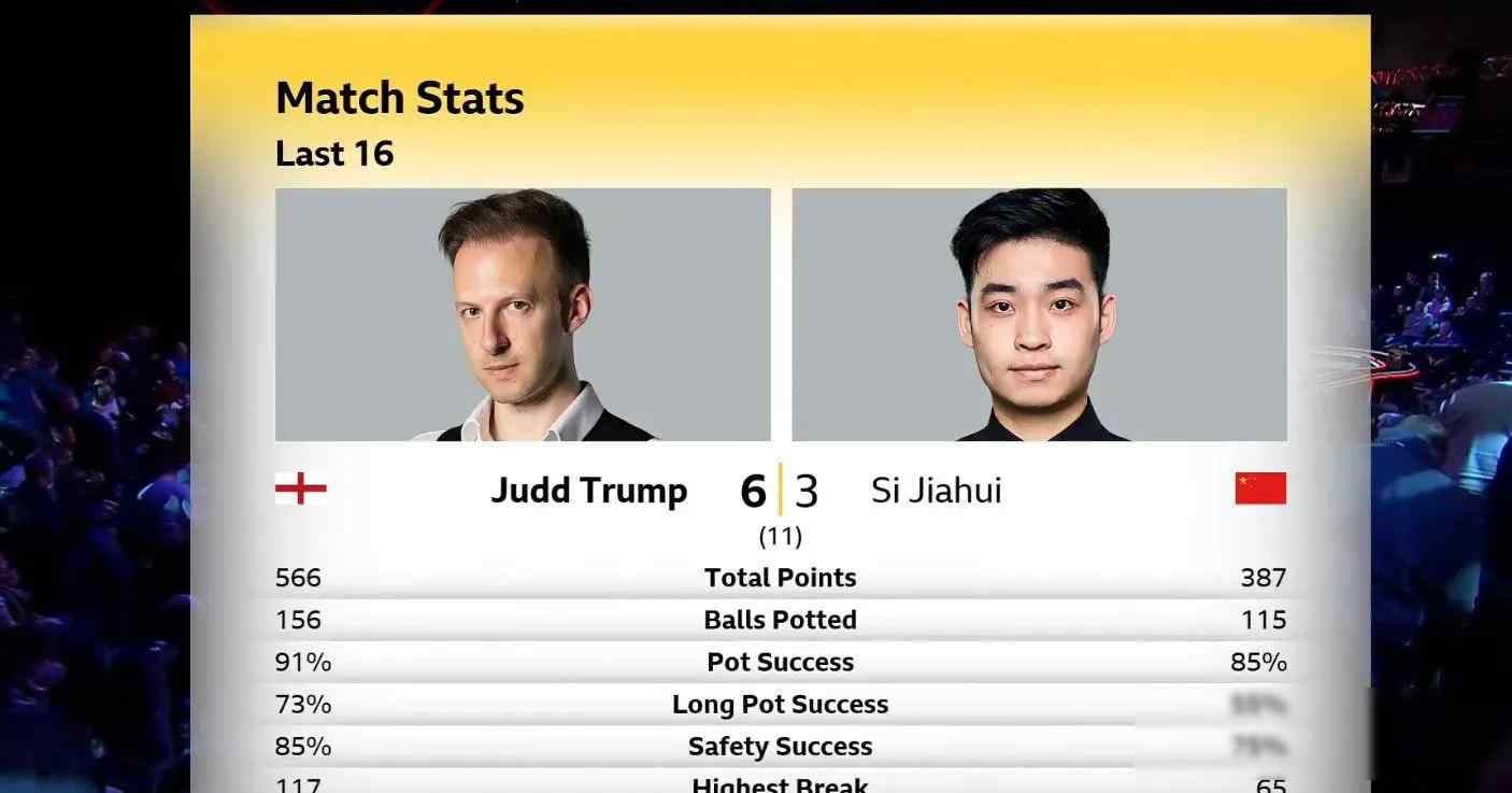 特鲁姆普与斯佳辉这场较量,表面轻松实则暗藏凶险,第四局在落后情况下实现翻盘,顺势扭转场上气势,斯佳辉虽打出两杆50+的得分,但特鲁姆普长台准度稳定,防守严密,从数据来看并非技术差距,更多体现在经验层面,关键时刻老将懂得如何掌控局面。