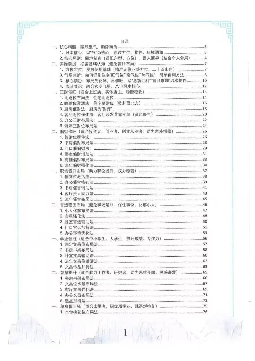 此书核心价值在于 **“全房布局、百煞化解、流年调整、器物应用”** 四大板块,从外局环境到内局细节、从基础理论到实操步骤、从常见煞气到专属化解,全覆盖、无保留、手把手教学,零基础可入门、从业者可进阶。