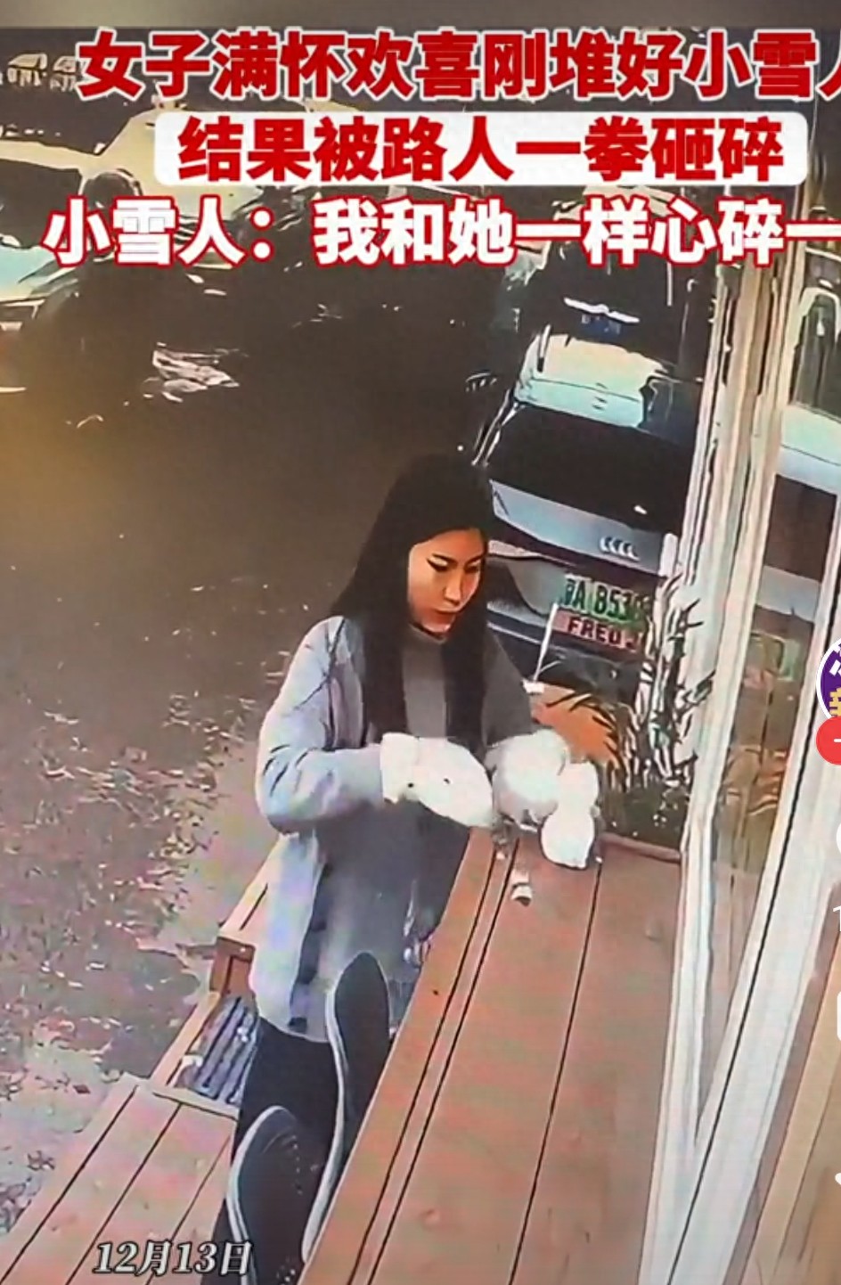 雪人的身体瞬间崩塌,女孩的笑容也随之冻结。这一幕,令人愤怒,也令人深思:到底是什么,让一个成年人对一个无辜的孩子和她的纯真如此无情?有人会说,这只是一个不经意的冲动,是一时的情绪失控。但我想问,难道我们真的可以用“冲动”来为这种行为开脱吗?在这个快节奏、压力重重的社会里,难道我们就没有办法用一点点善意去温暖那些迷失的人吗?难道我们就不能多一点耐心,多一点理解,去守护那些还相信美好的人?其实,雪人被砸碎的背后,折射出的是一种社会的冷漠和价值观的扭曲。我们常常看到新闻里那些令人心碎的事件:无辜的受害者、无助的弱者、被欺凌的孩子……这些现象,似乎都在提醒我们:这个世界,仍然有太多需要我们去关心、去改善的地方。