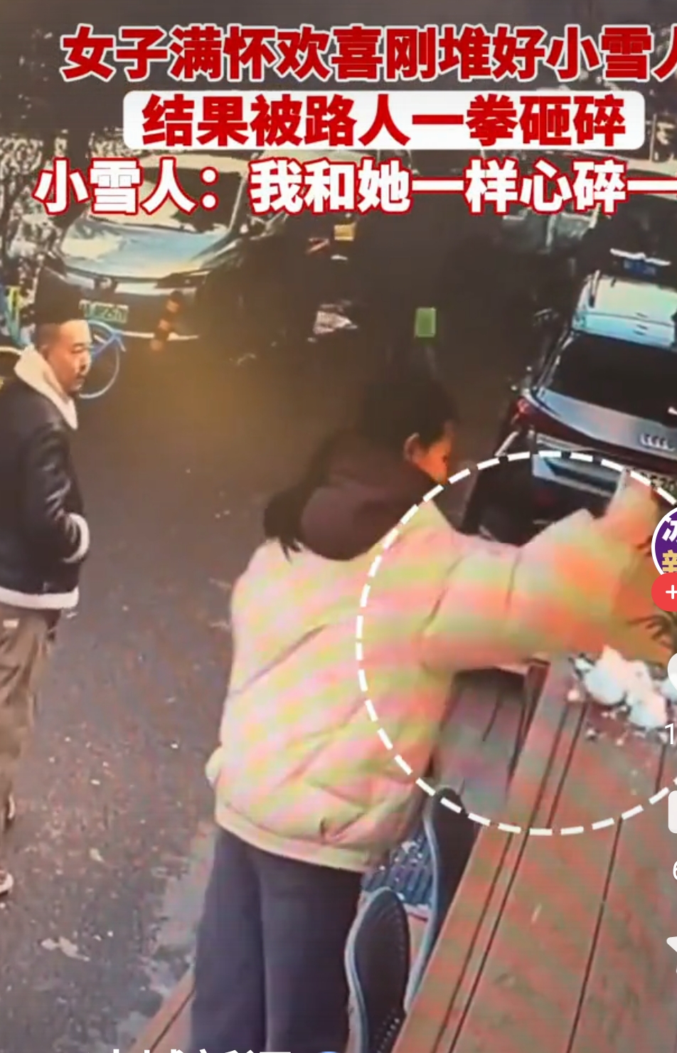 一个小女孩用心堆起的雪人,脸上洋溢着纯真的笑容,仿佛在诉说着冬日的温暖与希望。然而,就在她满心期待地看着自己的“雪朋友”站立在雪地上时,一道突如其来的身影打破了这份宁静。只见一位陌生男子毫不犹豫地走上前,一拳狠狠地砸在雪人身上。雪花飞溅,