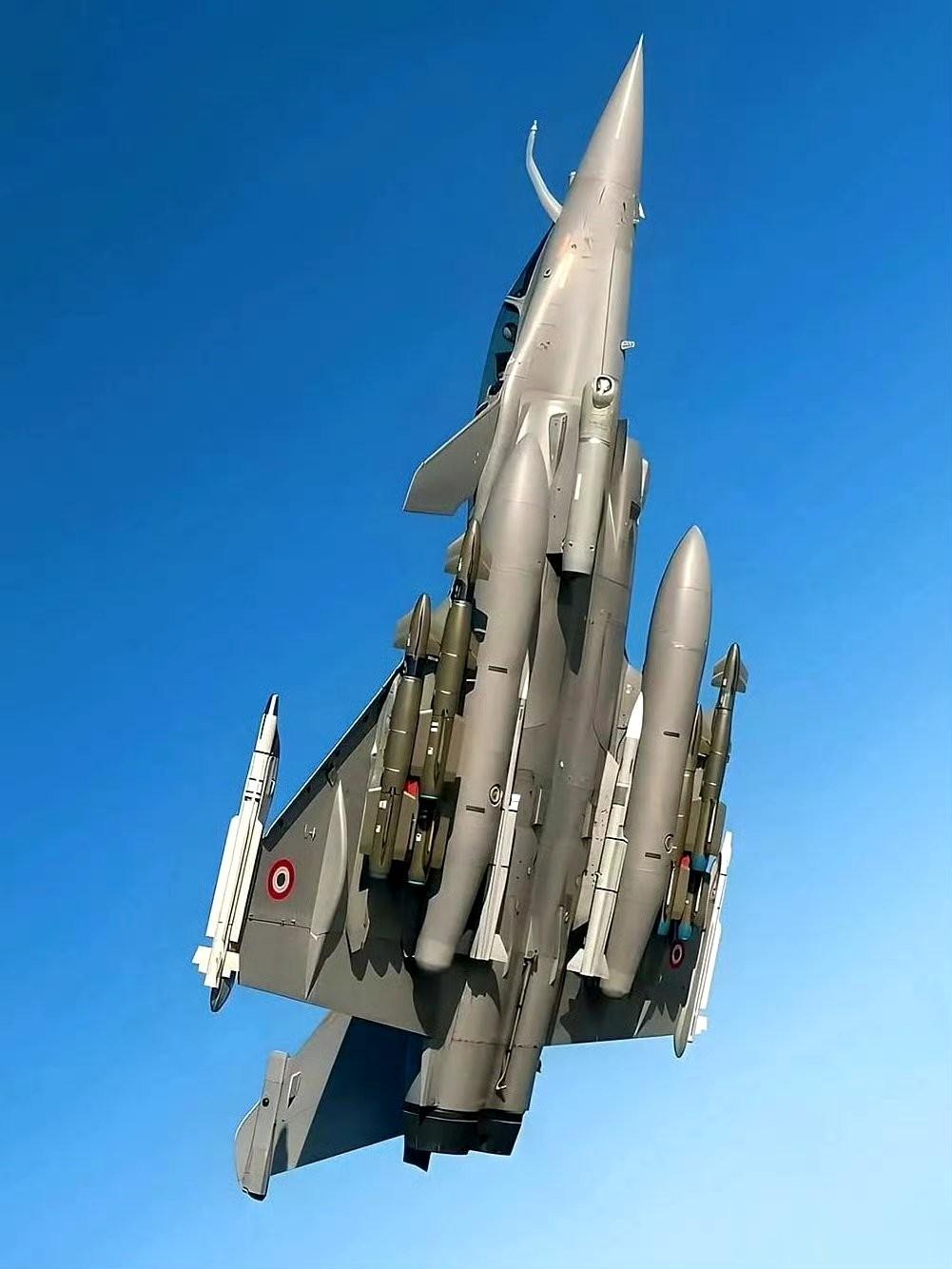 航电与电子战是阵风的核心杀手锏。其搭载RBE2有源相控阵雷达,可同时跟踪40个目标并攻击4个,升级后新增地面移动目标指示能力;全球首创SPECTRA综合电子战系统,实现360°威胁感知与主动干扰,无需外挂吊舱就能完成电子压制,这一设计至今仍被多国效仿。武器方面,从“米卡”“流星”空空导弹,到“风暴阴影”巡航导弹、飞鱼反舰导弹,再到F3型搭载的ASMP-A核导弹,构建起完整的打击体系。