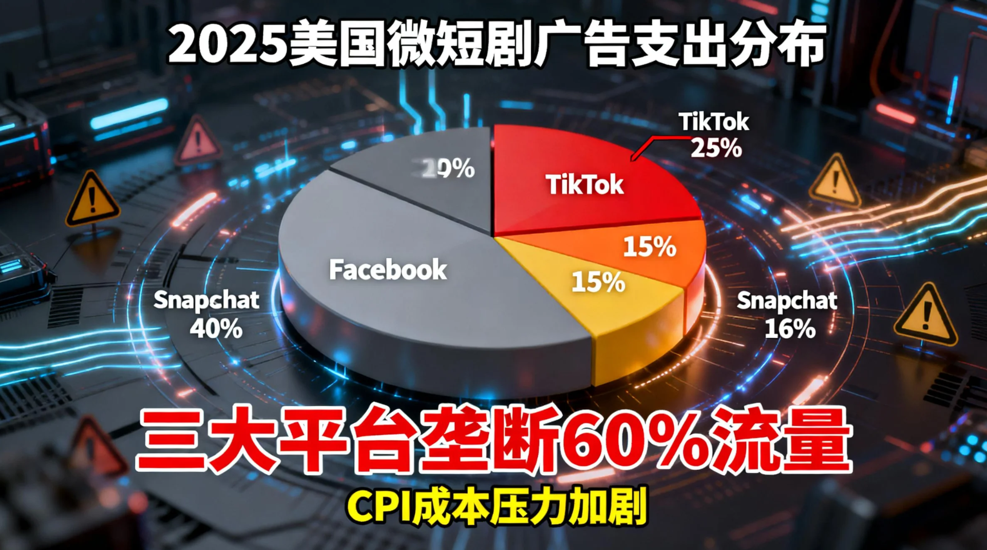 然而,随着Facebook、TikTok和Snapchat等核心渠道的买量竞价进入白热化,投流费用已成为厂商不可承受之重。 以行业巨头中文在线为例,其2025年前三季度的销售费用同比激增93.65%,导致了“增收不增利”的亏损局面。这种极端的流量竞争,使得单部剧集若不能在极短时间内爆发,便会被高昂的CPI消耗殆尽。