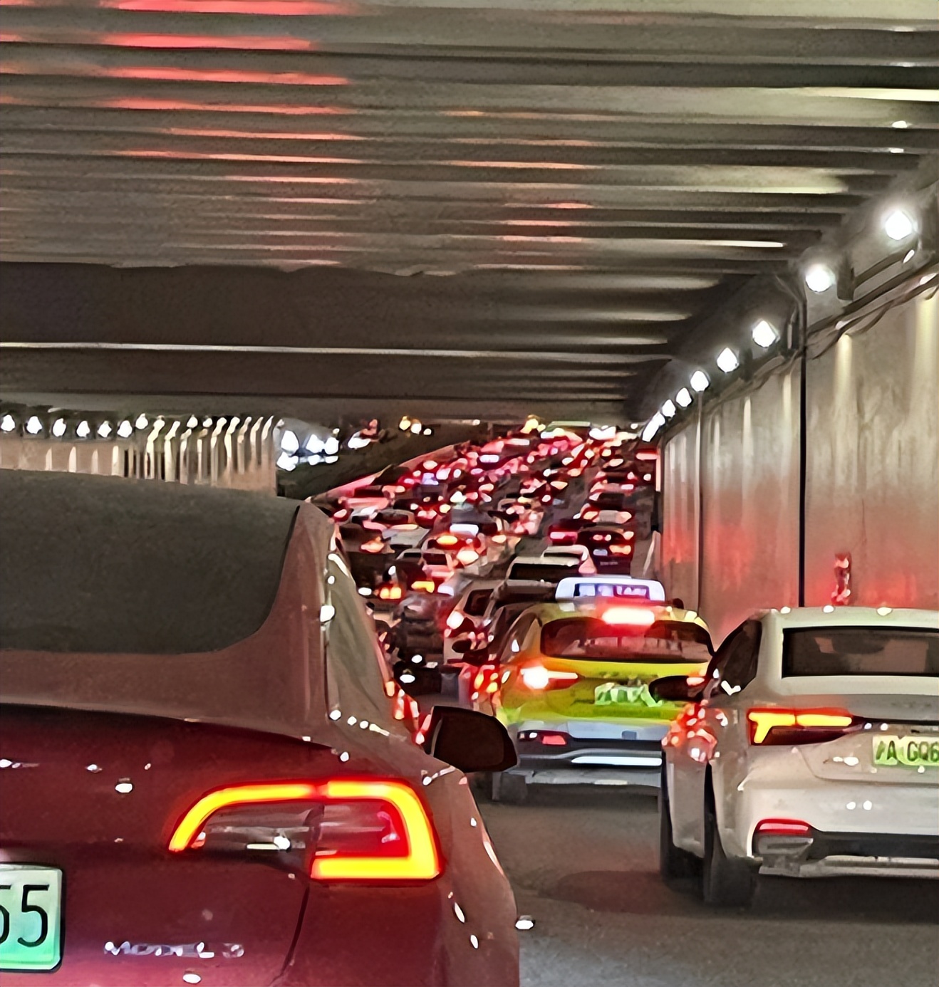 进入启东后,利用启扬高速也是一路畅通,但转入沈海高速后,车辆真的走不动了,时常还停下来等,而导航预测的到达时间在渐渐拉长。