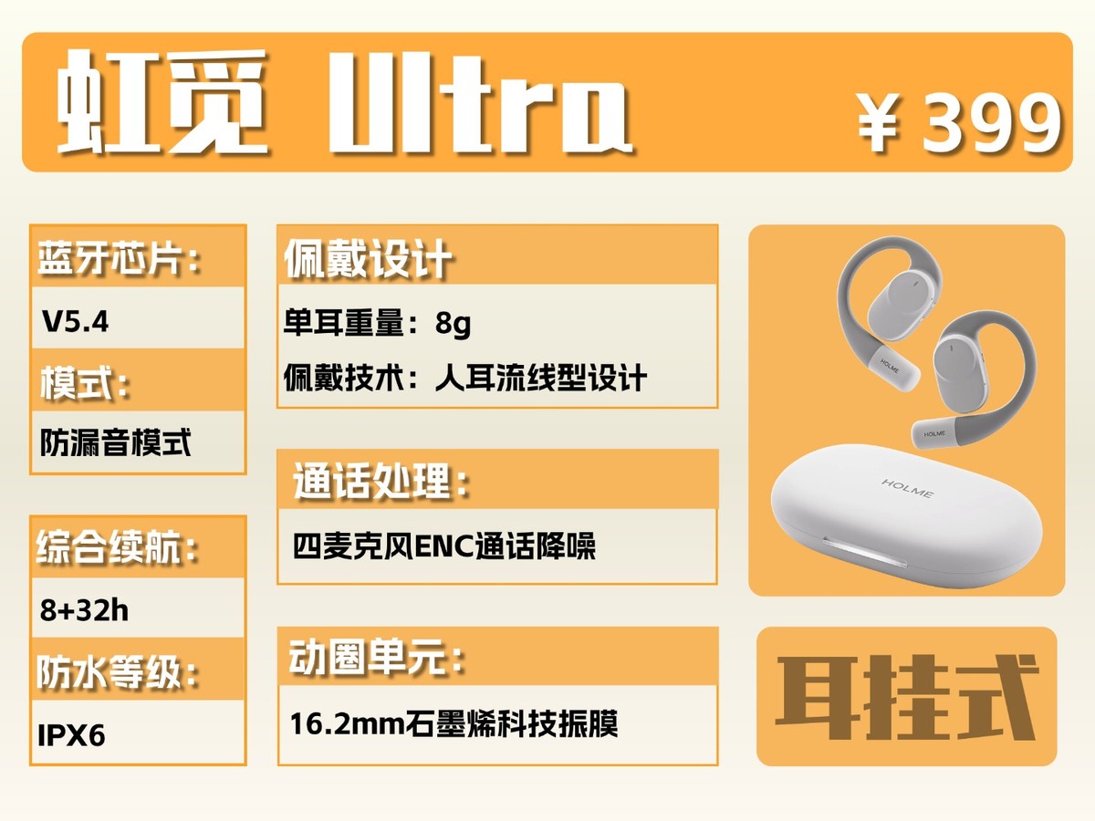 总结:我觉得在五百元以下的开放式耳机里,虹觅 Ultra 真的是闭眼入的款,预算有限又想选个靠谱的,选它准没错!