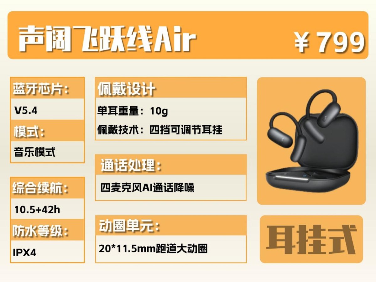 总结:声阔飞跃线 Air 在场景适配性、佩戴稳定性和通话降噪上表现优异,适合日常活动丰富的朋友。