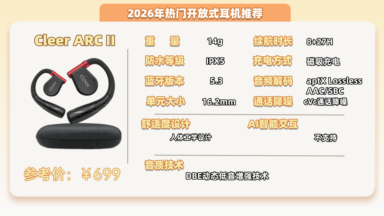 开放式耳机推荐TOP2:Cleer ARC II(699元)