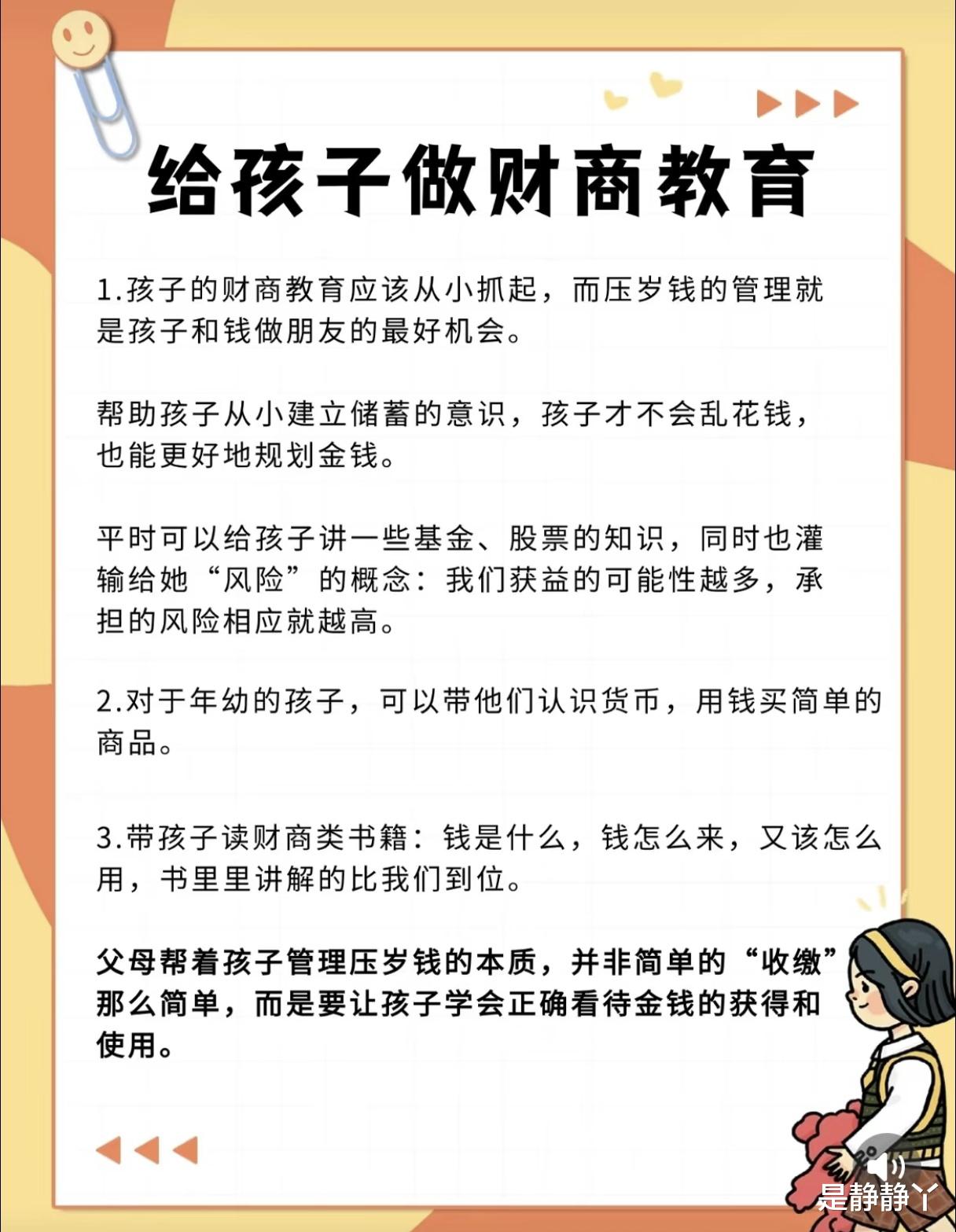 过年时,当孩子拿到红包,请家长忍住收走的冲动。那不仅是钱,更是他们独立和成熟的契机。让孩子掌管红包,陪伴他们学习理财和规划未来。即使过程中会有犯错和小损失,这也是成长的代价。我们希望看到的是能驾驭金钱、负责未来的孩子,这才是父母给的珍贵礼物。
