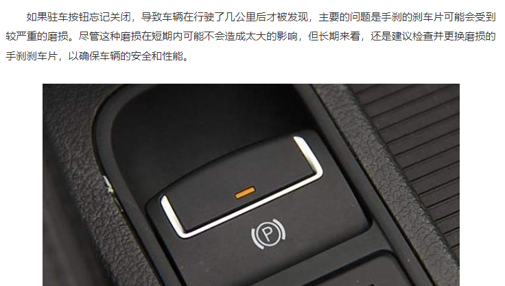 驻车按钮忘了关车开着走几公里会有问题吗?