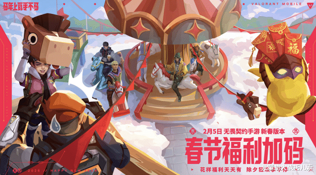 值此「马力全开」版本上线之际,《无畏契约手游》诚挚祝愿全体玩家新春快乐,马年大吉!这个春节,来《无畏契约手游》,不仅能体验丰富多样的娱乐玩法与硬核竞技,更有海量福利活动等你探索。新的一年,与陶喆一起玩转新春福利,共度马力全开的狂欢佳节!