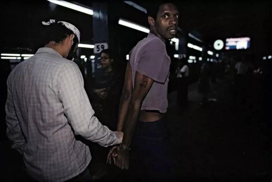 所以你看他的照片,会感觉到一种粘稠的、带着体温的真实。不是那种精致构图、光影完美的“决定性瞬间”,而是昏暗的楼道、拥挤的地铁车厢、斑驳的墙面,以及在这些背景下,人们毫无表演痕迹的日常状态。两个小孩沮丧的蜷缩在沙发上,窗外是开阔的街区和风景;一位戴着手铐的男子回眸时惊惧的表情,其眼神让人一眼难忘;地铁乘客脸上那种混合了疲惫、警觉和茫然的复杂神情。