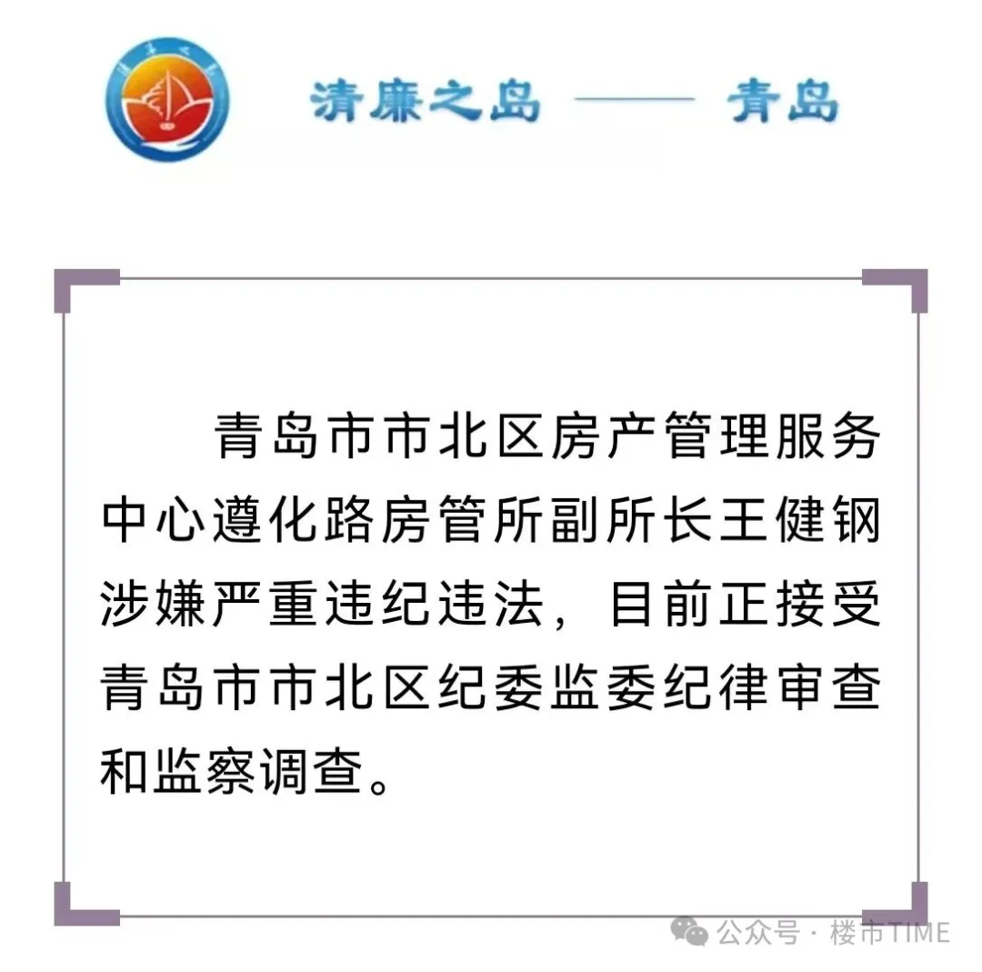 2月27日,青岛纪委官微清廉之岛扔出一枚重磅炸弹:市北区房产管理服务中心遵化路房管所,副所长王健钢涉嫌严重违纪违法,目前