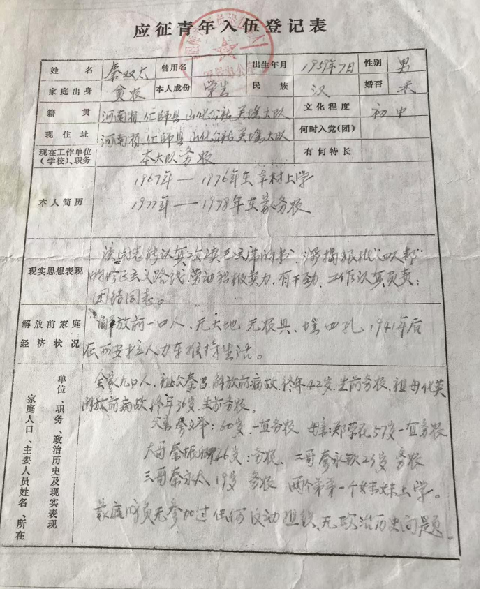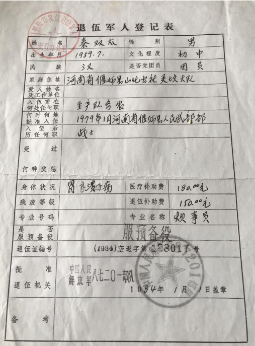 1984 年 1 月,秦双太退伍返乡,带着中央首长王定烈亲笔签名的介绍信,以及洛阳市退伍军人安置办的正式安置函,满怀憧憬地来到洛阳地方病防治研究所(后合并为洛阳市疾控中心)报到,开启了自己的地方工作生涯。