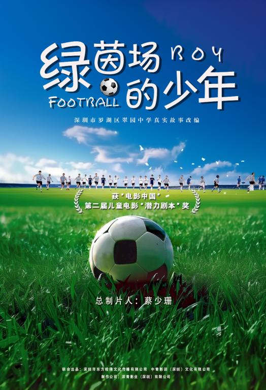 院线电影《绿茵场的少年》由深圳市东方哈佛文化传播有限公司、中青影训(深圳)文化有限公司联合出品,得到了中国儿童少年电影学会、中国电影基金会的大力支持和广东省、深圳市各级相关部门的全力配合,该片情节跌宕起伏,幽默感人,讲述的是一群孩子怀着不同的目的进入足球队后蜕变成长的故事,剧本获得第二届“电影中国”儿童剧本征集活动潜力电影剧本。