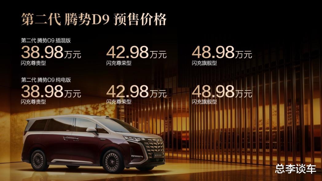 本次下线的科技旗舰商务车首选——第二代腾势D9,正是比亚迪核心技术的集大成之作,新车预售价为38.98万-48.98万。作为全球首款搭载第二代刀片电池的量产MPV,该车搭载比亚迪第二代刀片电池,续航实力全面突破:插混车型纯电续航达