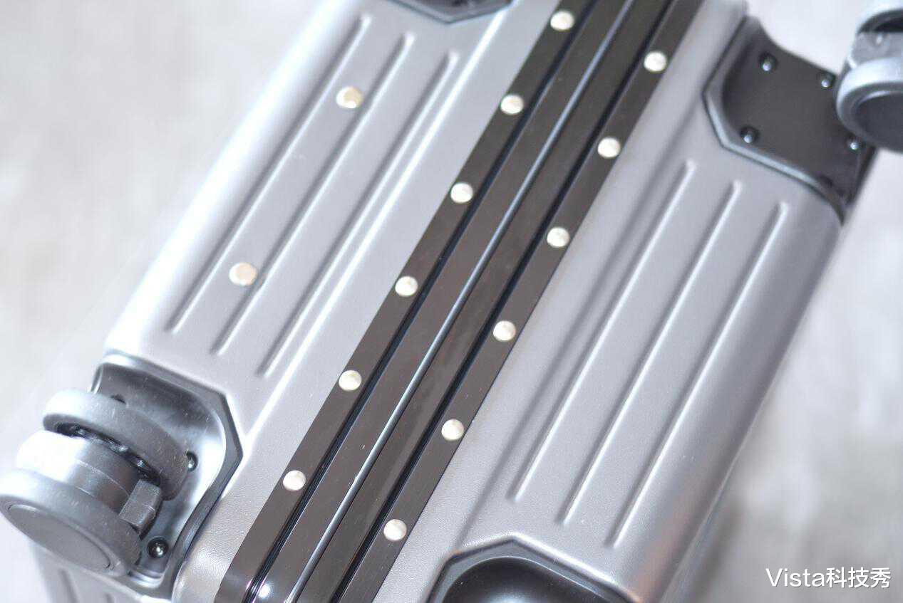 普通的行李箱屈指可数的铆钉起到一定的加固作用,但对于硬核品控的GaKior,在GaKior行李箱直接高密度型铆钉加固,我入手的20英寸箱体共有铆钉64颗,而24英寸箱则有82颗铆钉,6英寸箱更加固有88颗铆钉之多,大大提升了行李箱的结实程度。