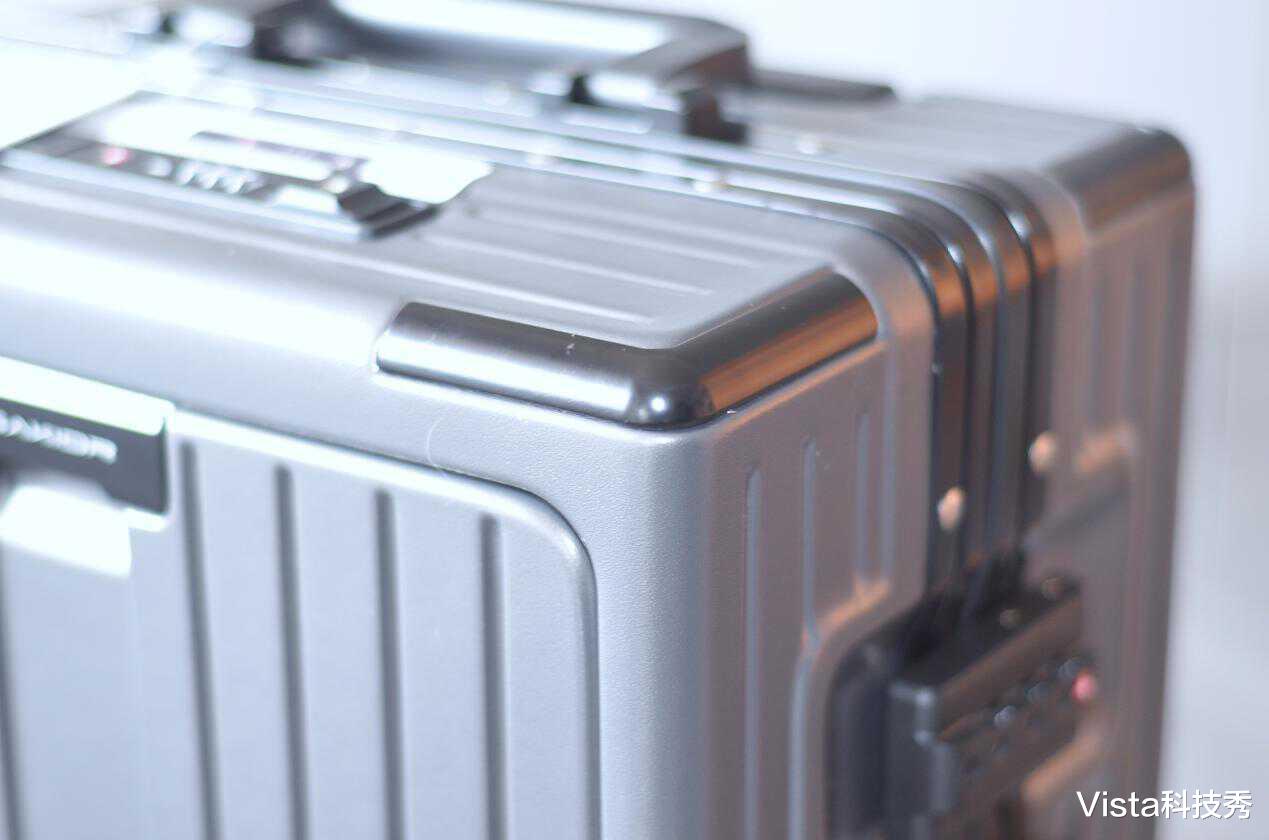 我之前用的行李箱大部分采用的是普通PC或ABS材质,很多时候匆忙中碰撞或者遭遇暴力托运非常容易箱体破损,而 Gakior 直接采用四层进口德国科思创PC材质,搭配双层压铸加厚,铝框则采用SBAT一体压铸技术,大幅提升行李箱的耐用性。