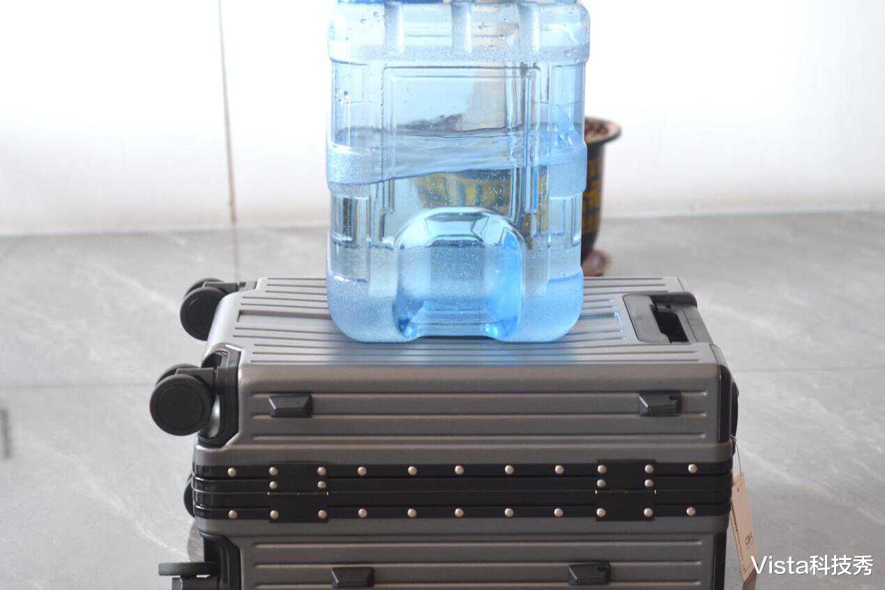 之前我家孩子总喜欢坐在我的行李箱上滑行,肉眼可见的箱体变形、边框松动,每次我都要及时把他抱下来,担心箱体垮塌造成危险。这款GaKior行李箱采用四层进口德国科思创材质,加上SBAT一体压铸技术,双层铝框开合和航空级铝合金合页、进口双层棱形波浪结构,满满的结实感,实测20公斤水箱放置箱体1小时,包括我66公斤体重直接踩在箱体上一分钟,移除水箱和我下来之后对箱体检查,整个箱体毫无塌陷变形,开合依旧严丝合缝,未见任何异常,真心佩服这防压防爆的硬核实力。