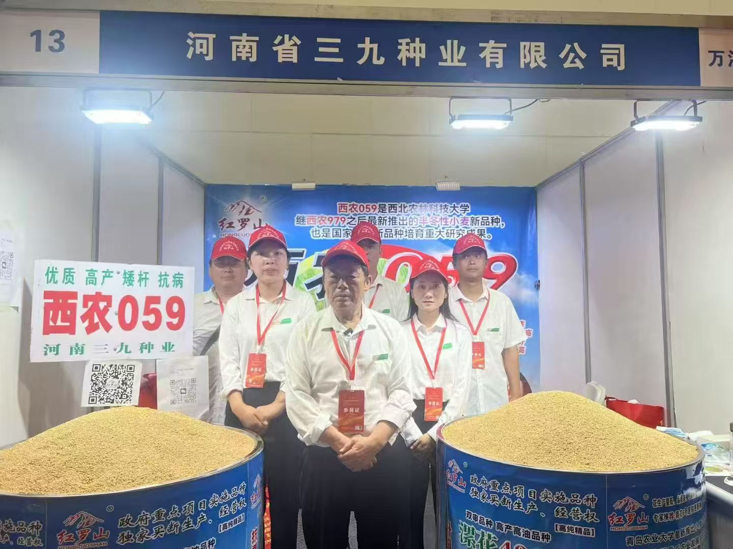 种子,是农业的“芯片”,是饭碗的根基。深知此理的唐长友,带领三九种业的育种专家团队,把实验室建在田间地头,把论文写在广袤大地。近三十年来,他们顶烈日、冒酷暑,踏遍汝南的沟沟壑壑,在风吹日晒中观察作物长势,在反复试验中优化品种特性。为了培育出适应本地气候、兼具高产与优质的小麦品种,团队与西北农林科技大学深度合作,历经数年攻关,成功引进并推广“西农059”小麦新品种。这款通过陕西省品种审定的优质强筋小麦,具备半冬性、早熟、耐寒抗冻等多重优势,在汝南县三门闸街道大石村的集中展示基地里,创造了亩穗数43.8万、穗粒数38.2粒、千粒重44.6克的优异表现,预估亩产634.3公斤,实际亩产更是突破700公斤,让种植户们看到了科技育种的巨大潜力。