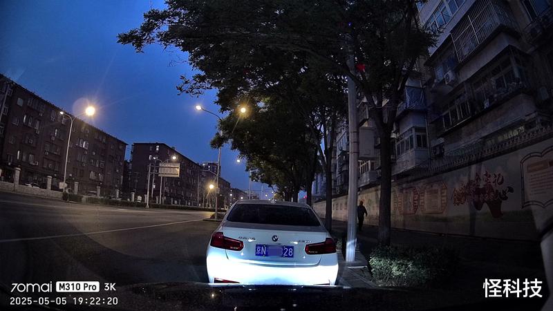 通过装车实测后发现,M310 Pro3K在夜晚低能见度的环境下拍摄能力提升明显,F1.55大光圈能捕获更多光亮,使得画面比肉眼所见还要清晰,高亮度的路灯也没有产生很多炫光,噪点控制也不错。