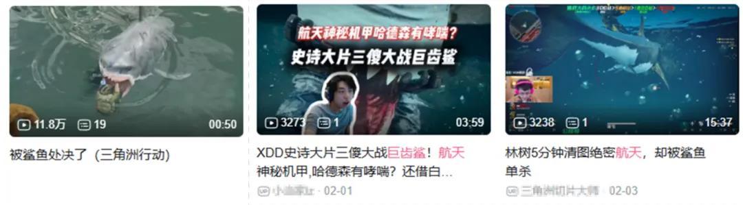 更新之后,这些内容很快就成了社区养料,进一步助推了玩家内容的生产和传播。有人会一本正经地制作攻略,有人则会分享三人小队与巨齿鲨斗智斗勇,最终被团灭的有趣视频。