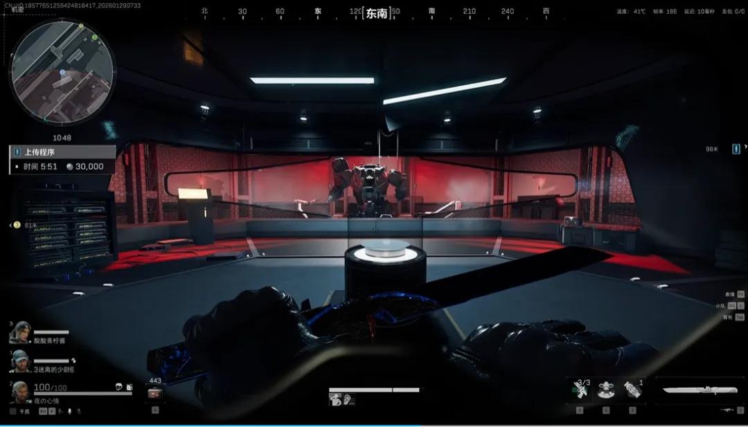 除了宏大的叙事演出外,《三角洲行动》也在航天基地中悄悄设置了与《逆战:未来》联动的彩蛋房,玩家需要潜入水下,躲过巨齿鲨的追击才能找到入口。进入之后,你能看到《逆战》标志性的机甲,并有机会获得联名大红。