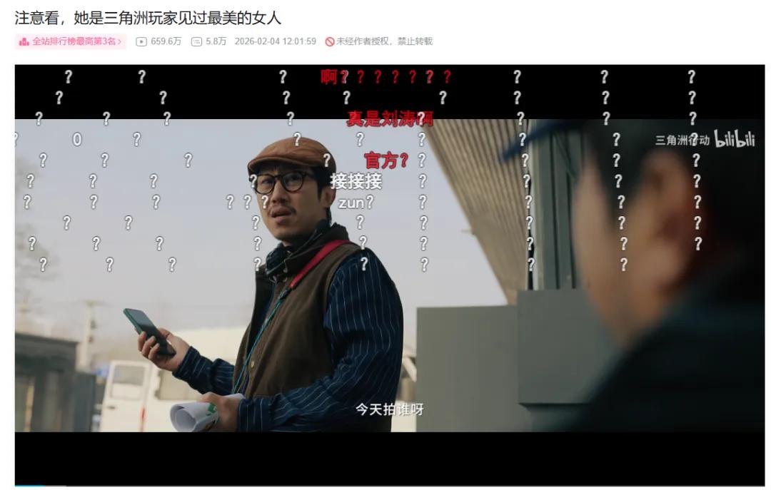 第一轮春节热度高峰,早在2月4号就开始了。当时,《三角洲行动》发布了一则刘涛相关的品牌短片,标题是“注意看,她是三角洲玩家见过最美的女人”。如果你不玩三角洲,可能会懵圈,但这放在玩家圈子里,简直是核弹级别的整活。