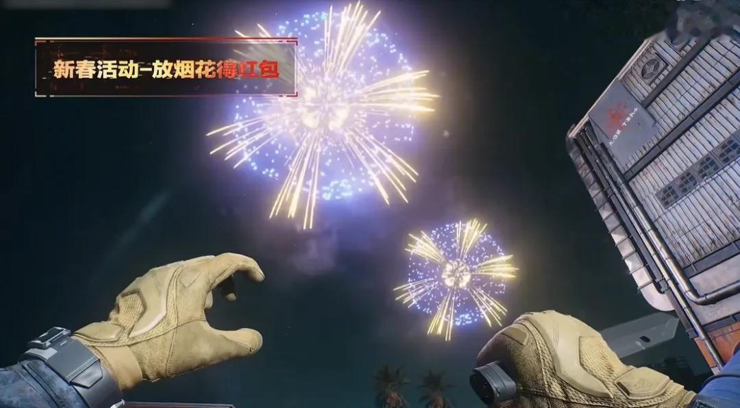 随后是放烟花玩法。去年春节,游戏就会在单局中投放烟花道具,而得益于黑夜行动的上线,今年玩家就可以去到黑夜地图中,用烟花点亮天空。
