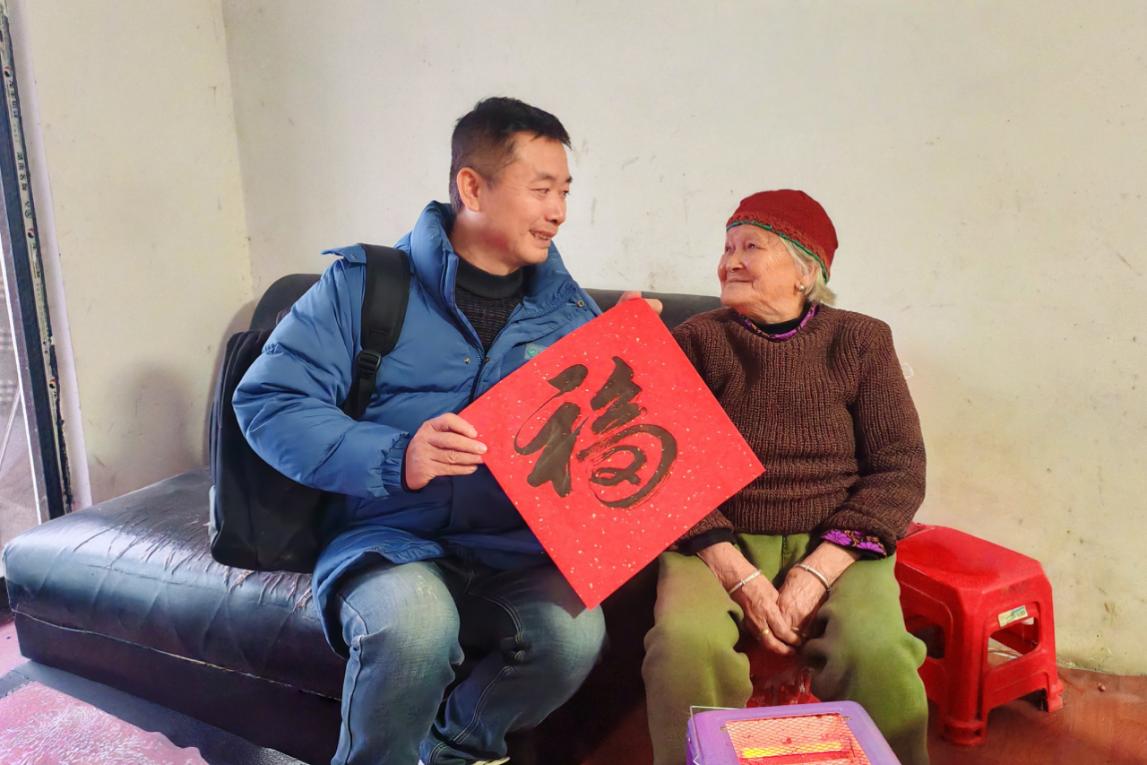 针对小区银发群体,志愿者们特别设立了健康服务点位,免费为老年居民测量血压,细致询问他们的身体状况和冬季生活情况,耐心叮嘱老人注意保暖、规律作息,做好冬季养生保健。同时,志愿者们与老人们围坐谈心、闲话家常,倾听他们的心声,为行动不便的老人送上“福”字和关怀,用贴心陪伴填补老年群体的情感空缺,让老人们感受到社区与企业的双重温暖。