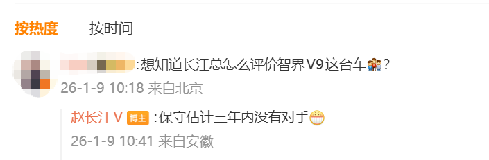 当被问及如何评价智界V9时,赵长江回复称“保守估计三年内没有对手”。