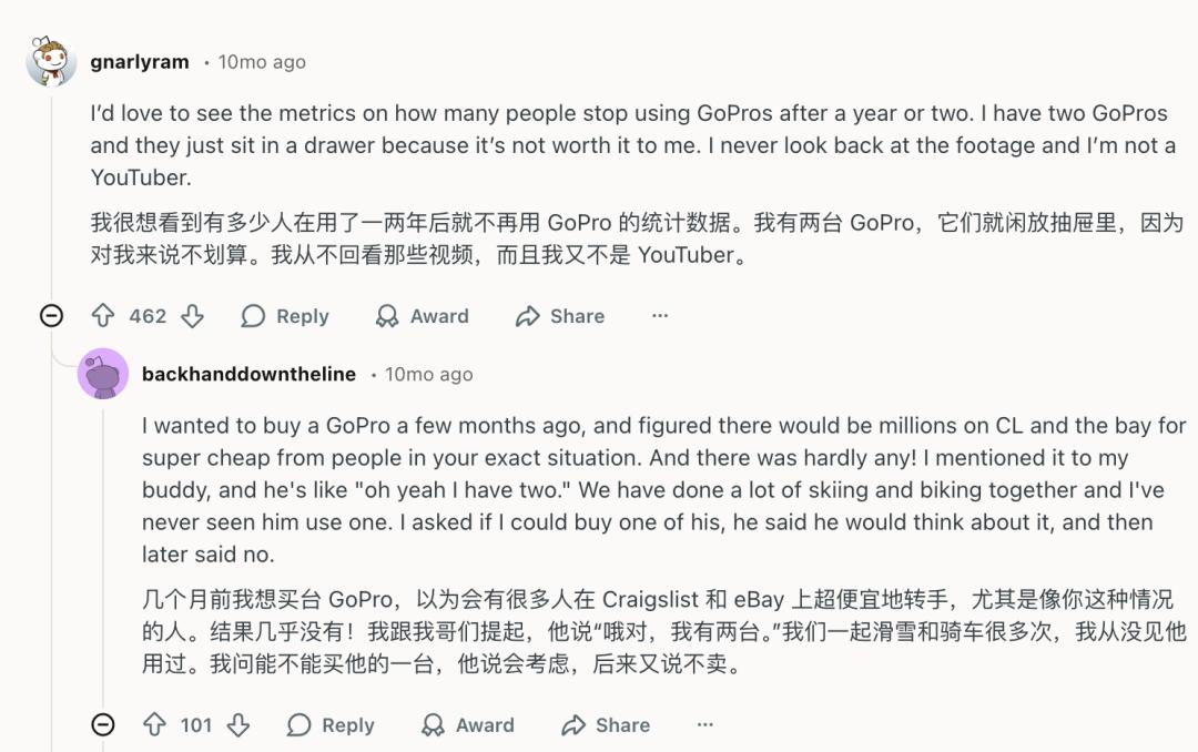 图丨Reddit 上关于“GoPro 要完蛋了吗?”的讨论(来源:Reddit)