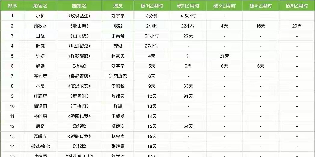 据说开播还不到5小时,刘宇宁所饰演的角色热度就直接突破了两亿。