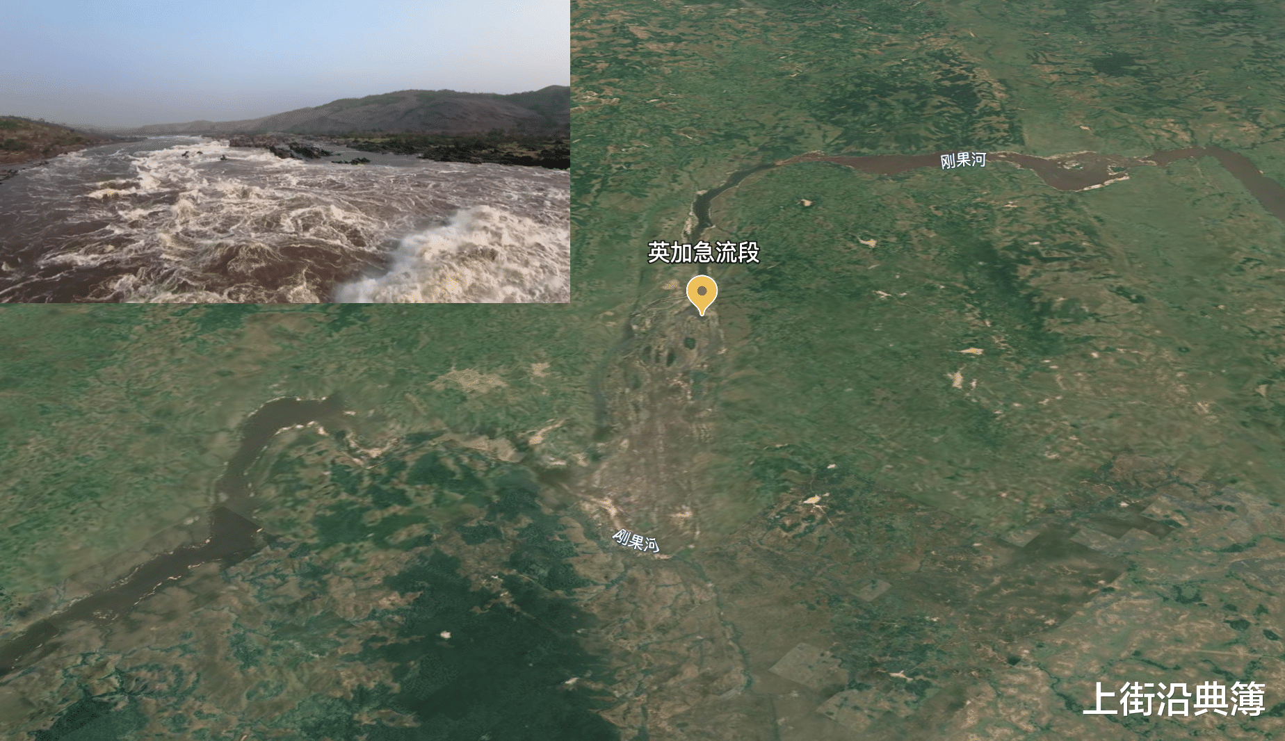 原因就在英加进入下游之后,刚果河在金沙萨(民主刚果首都)以西进入一段峡谷地带。在英加(Inga)急流段,刚果河在一段15公里长的河道急降了约96米。这相当于一辆满载的货车从山顶冲下,没有刹车,根本停不下来。